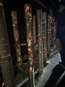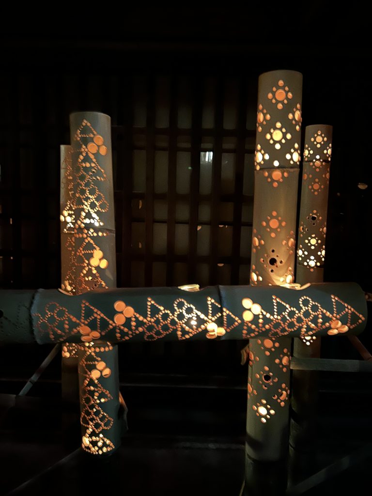 ろうそくのような柔らかい灯りが、竹の隙間からぽっと浮かび上がるたびに、まるで時間がゆっくり流れているような気がしました。